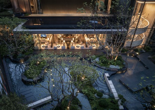 城市核芯约10的米挑空,社区如玉盘托珠般被抬高了1.4米。拾阶而上,园林中藏着几乎1:1复刻的峡湾、密林和溪涧,美学感拉满。