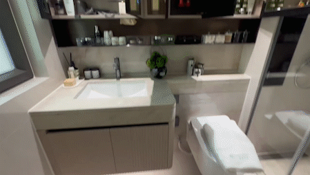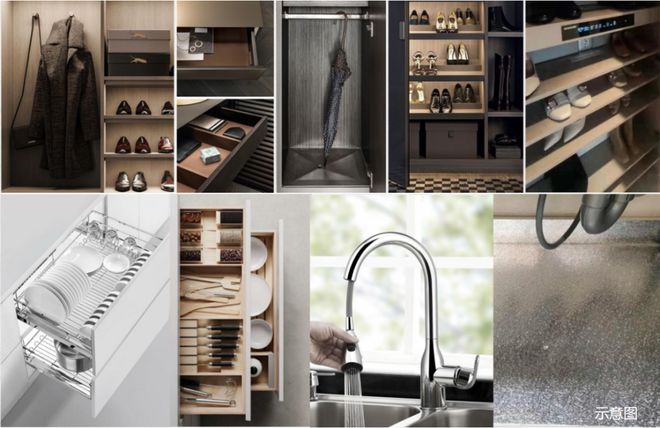 走进样板间,嘉格纳 7 件套厨电、威乃达橱柜、怡口直饮系统、铂浪高水槽龙头,再到卫生间的劳芬台盆马桶、当代龙头,每一个品牌都是世界一线水准。