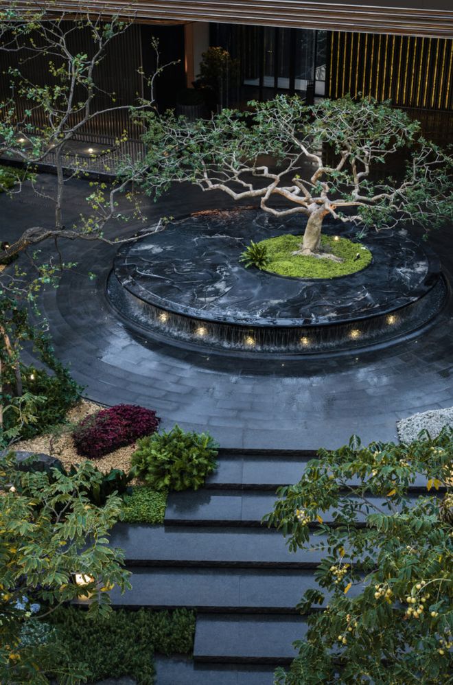 五进归家礼序中,水景、松林、天然石材层层递进,“大隐隐于市” 的私密与尊贵,在此刻登峰造极。