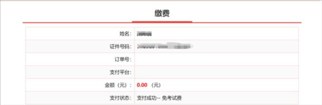减免申请审核通过,报名系统“支付状态”栏显示“支付成功—免考试费”字样(如下图示)。如已缴纳报名费的,在确认工作结束后,收费平台按原缴费途径退费;未缴费的报考者可不再缴费。如报考者在申请后系统界面未按下图显示,为确保正常参考,可先行支付报名费,待减免申请审核通过后退还已缴报名费。减免申请审核不通过的报考者需在规定时间内自行缴纳报名费。