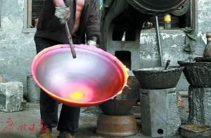 今年70岁的汪金元是江西省萍乡市东桥镇出了名的“铁锅匠”,他祖上世代以铸铁锅为生,这门绝艺至今已传承了600多年。这种铁锅经“祖传秘方”炼制,曾是皇帝的“御用炊具”。但如今,老匠人面临新问题,铁锅绝艺面临失传。为了铁锅手艺不失传,汪金元愿意将铁锅“祖传秘方”传给外人,公开向社会“海选”铁锅绝艺的传人。图为成型后的铁锅。