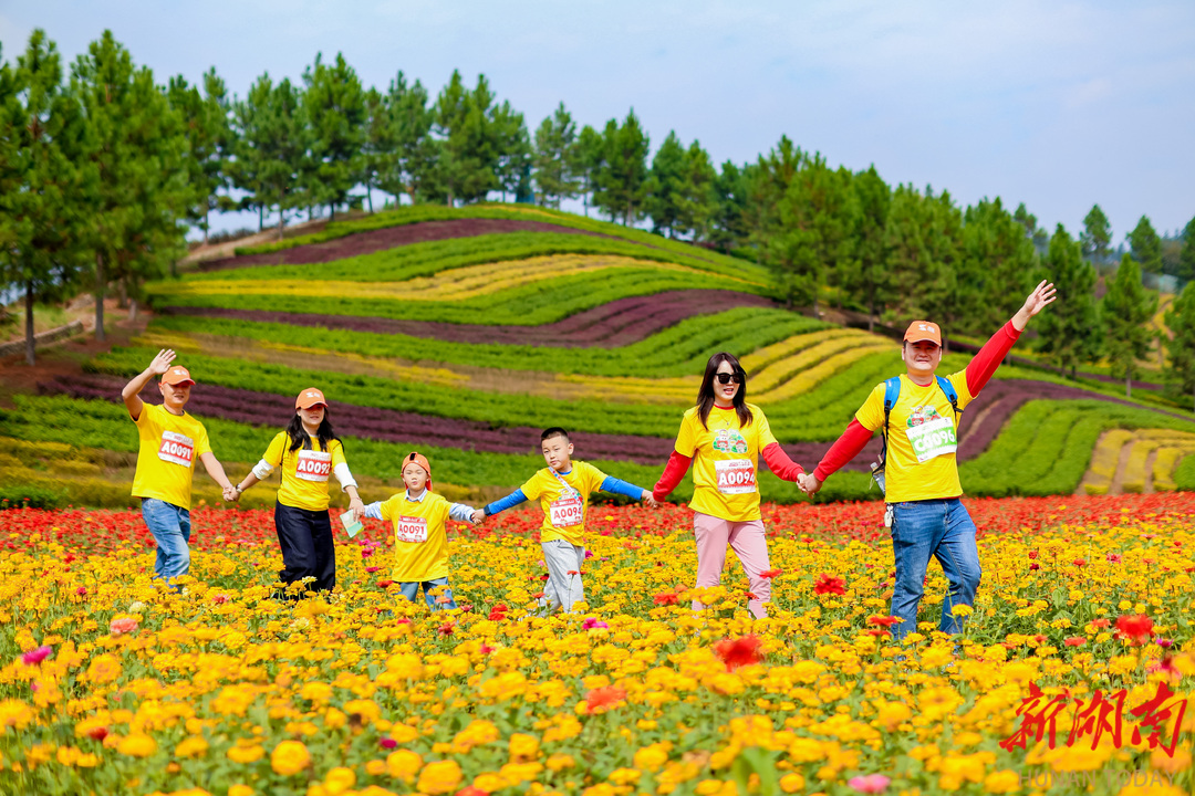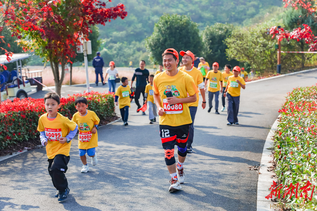 10月26日上午,安化县茶乡花海景区,2025安化走娃少儿健走大赛欢乐启程。湖南日报全媒体记者 童迪 摄